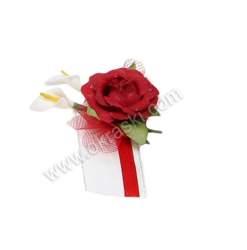 Poročni naprsni šopek - belo/rdeč - vrtnica