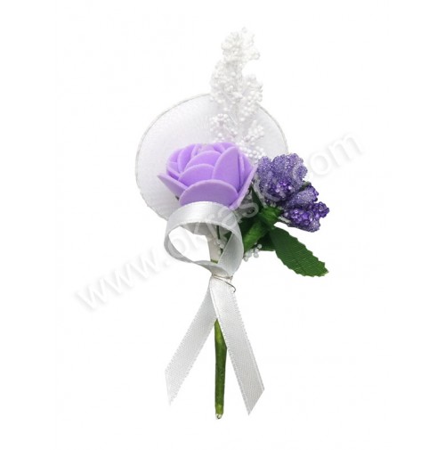 Poročni naprsni šopek - lila/vrtnica - bunkice