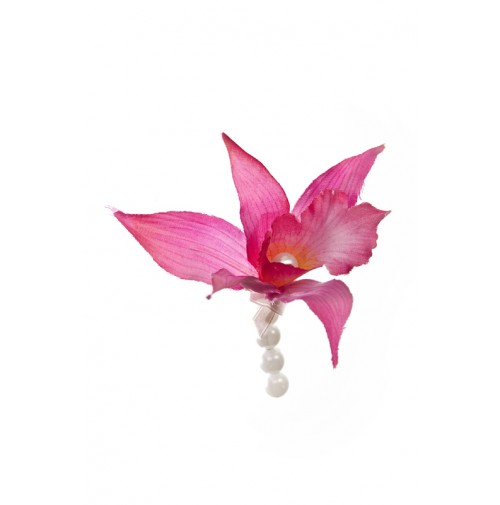 Novost so broške na katere lahko natisnete slikico, inicialki, imeni, datum ali kombinacijo omenjenih možnosti.Material: umetni cvet orhideje, perlice, satenast trak, sponka