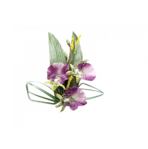 Količina:Naprsni šopek ali zapestnica za ženina, priče in starše so izdelani iz svežega cvetja, kot je nevestin šopek. Ostali svatje imajo izdelanega iz suhega ali svilenega cvetja.
