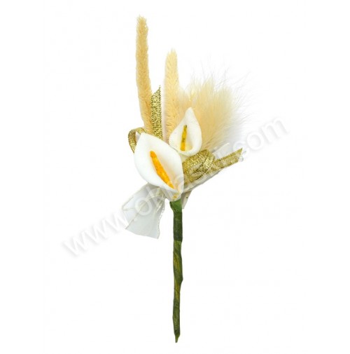Količina:Naprsni šopek ali zapestnica za ženina, priče in starše so izdelani iz svežega cvetja, kot je nevestin šopek. Ostali svatje imajo izdelanega iz suhega ali svilenega cvetja.