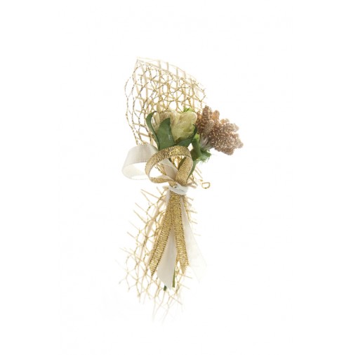 Količina:Naprsni šopek ali zapestnica za ženina, priče in starše so izdelani iz svežega cvetja, kot je nevestin šopek. Ostali svatje imajo izdelanega iz suhega ali svilenega cvetja.