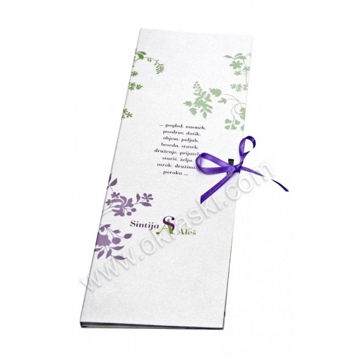 Količina:Poročne zahvale oz. zahvalna pisma niso le lepa gesta, ampak tudi lep spomin, ki ga lahko podarite vašim svatom. So izjemno lep zaključek vaše poroke, oblikovana pa so lahko v stilu z vabili.