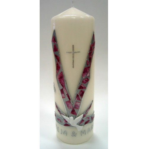 Poročna sveča - pink/srebrna