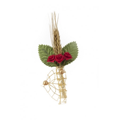 Poročni naprsni šopek - rdečo/zlat - pšenica