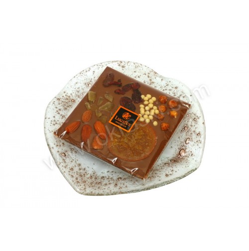 - mlečna čokoladna tablica - posuta (Lucifer) v celofan vrečki;Material: 4 mm debelo steklo s postopkom fuzije, čokoladica,