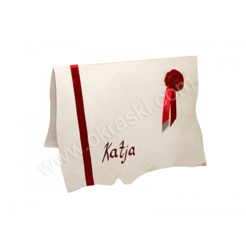 Material: bež karton, bordo rdeči trak, vosek za pečat