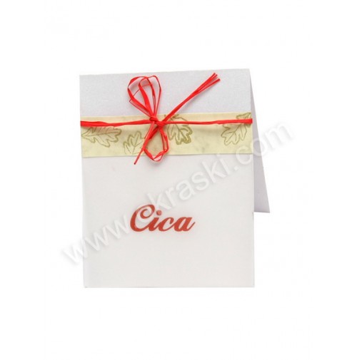Posebnosti:Napis imen na kartici (ročni ali tiskani) je z doplačilom. Pri naročilu imena pripišite v opombe.
