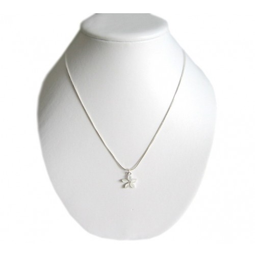 Material: srebrni obesek z belimi kamenčki v obliki rožice - cirkonije, srebrna verižica, srebrni zaključki za zapenjanje.