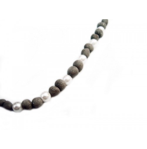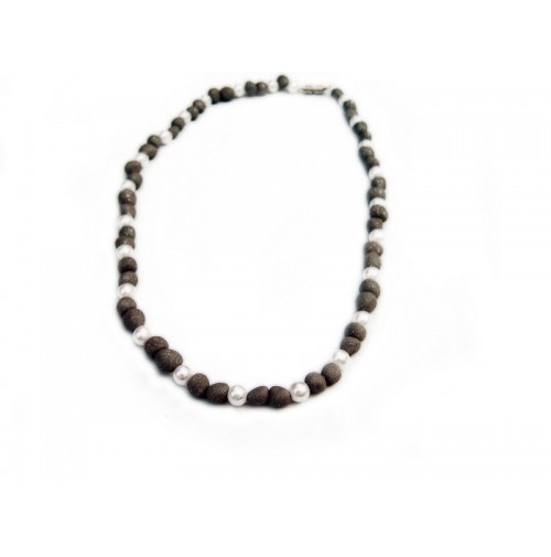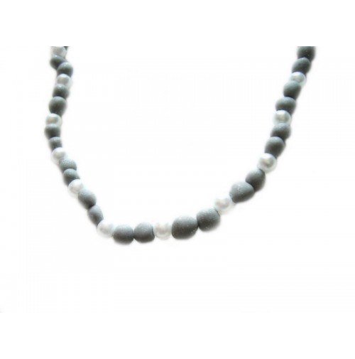 Material: perla perlice, silk, srebrna obročka za verižico, fibo masa, fibo lak.